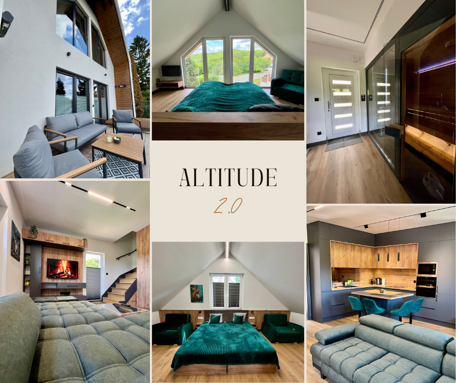 Az Altitude 2.0 egy vadonatúj, tágas, luxus vendégház, amelyet kifejezetten családoknak, baráti társaságoknak, vagy akár pároknak terveztünk, akik a megszokottnál több helyre és magasabb szintű kényelemre vágynak privát jakuzzival, finn szaunával és csodás panorámával.