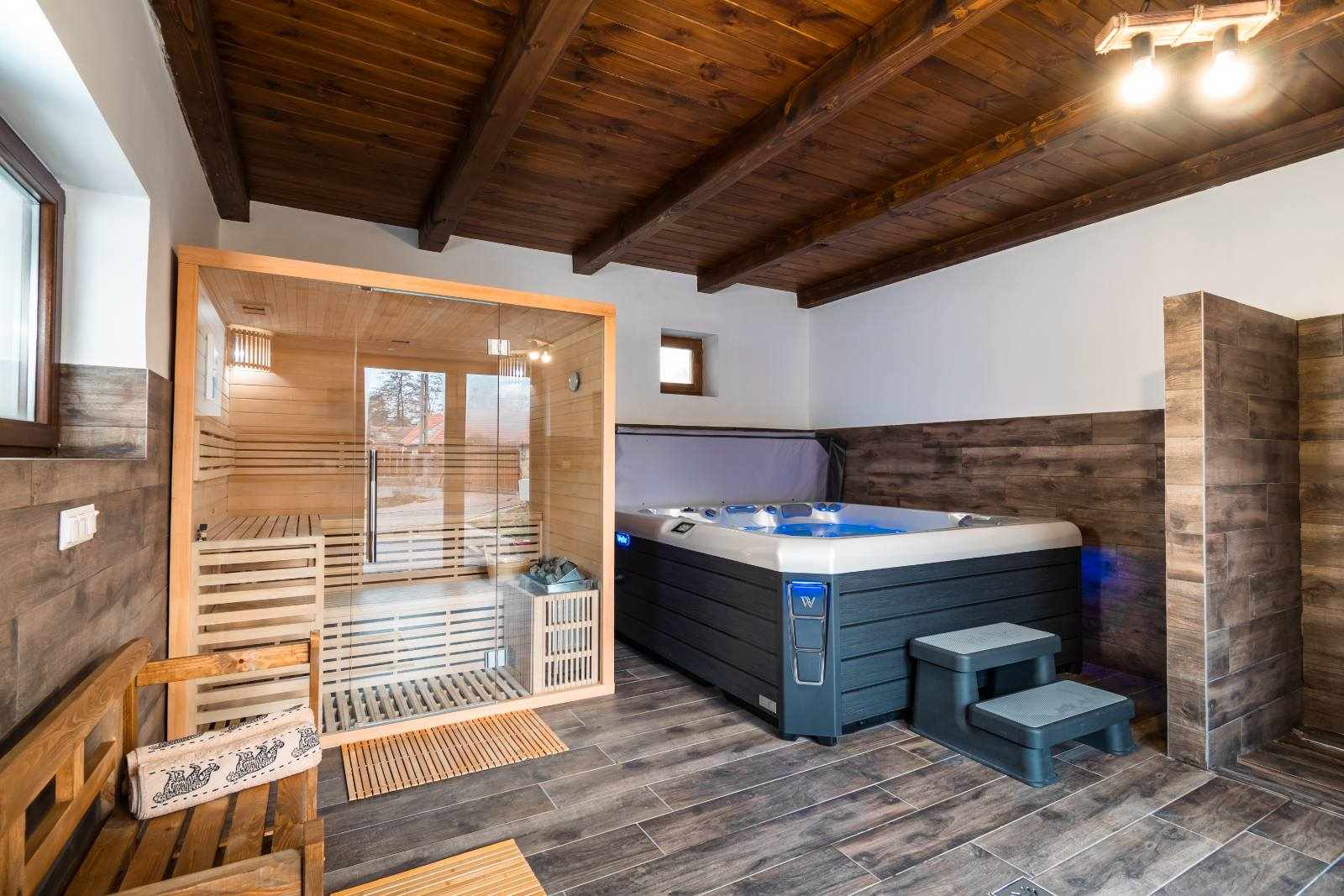 Felszereltség: jakuzzi, szauna, tűzrakóhely, grillező, parkoló, WiFi, klíma