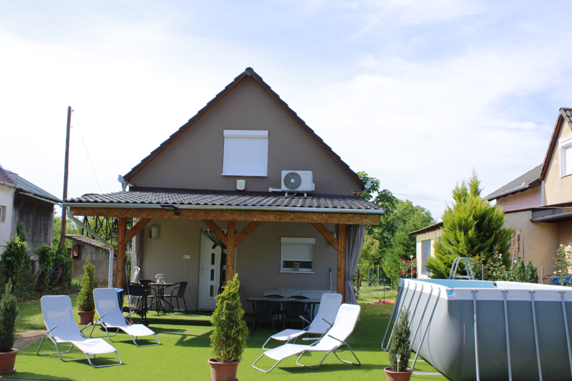 Az udvarban kerti bútorok, grillezési és bográcsozási lehetőség.