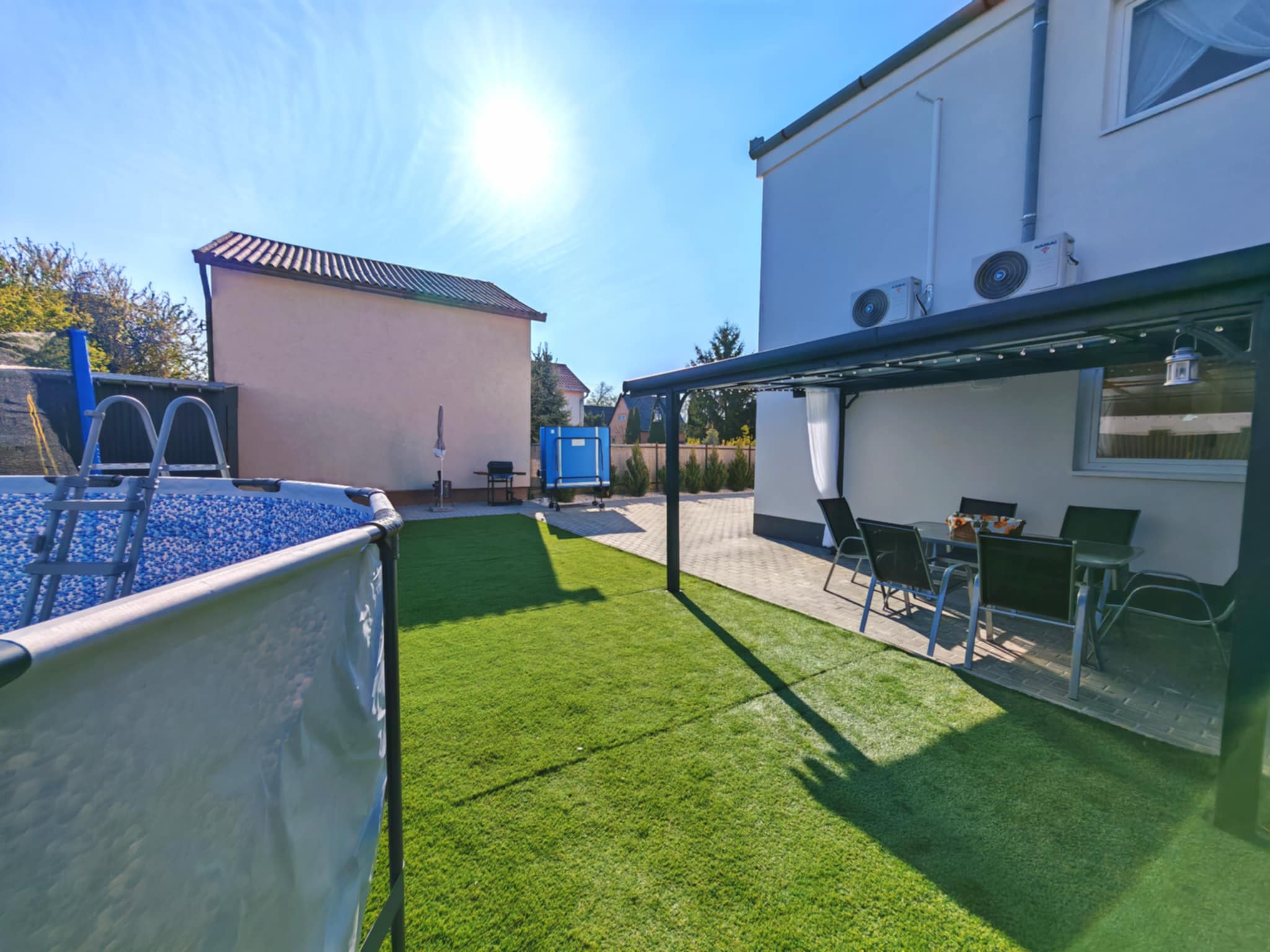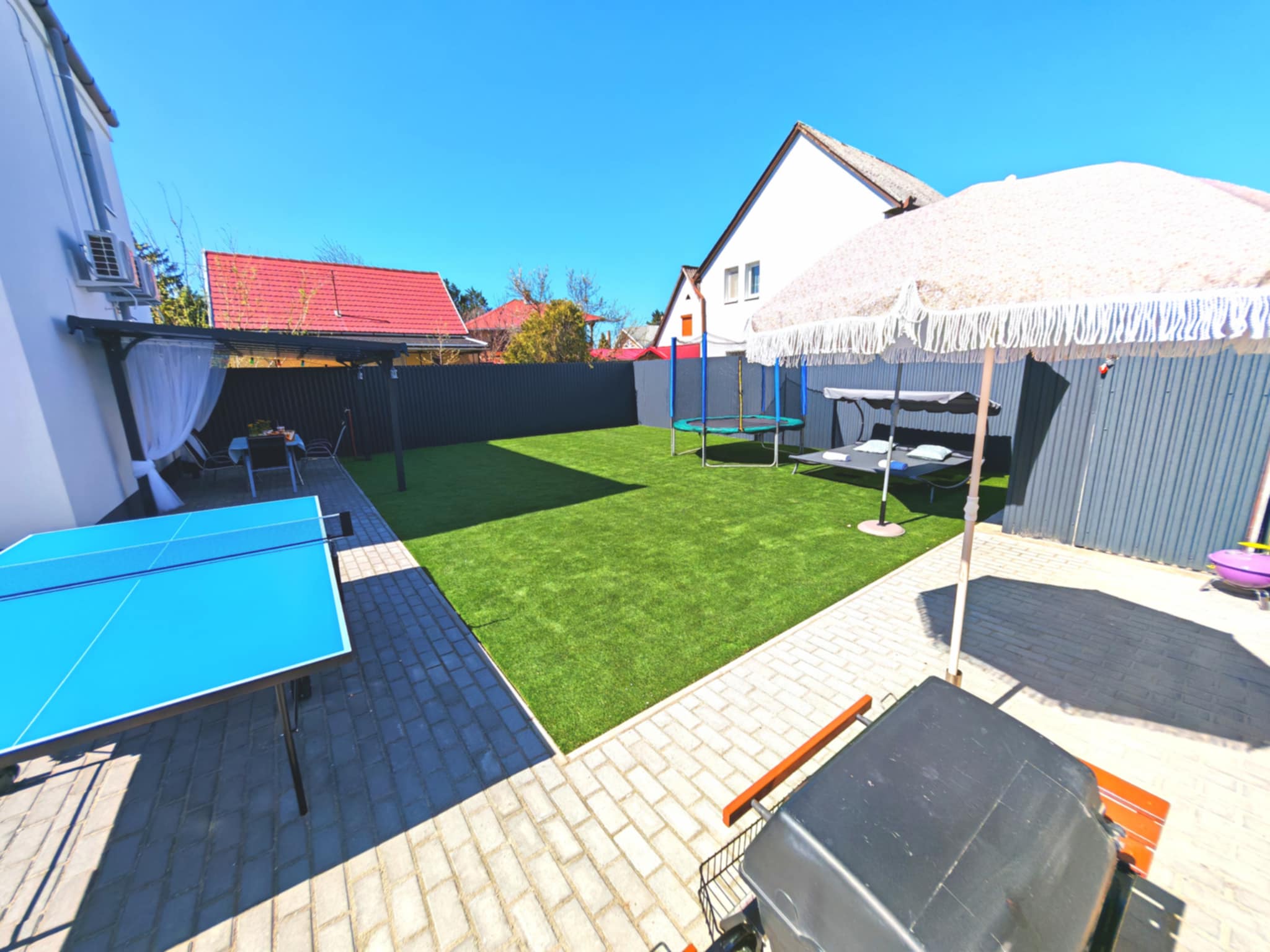 A nyári forróságban garantált felfrissülést nyújt a vízzel feltöltött medence, de a kertben trambulin, pingpongasztal, grillező és bográcsozó hely is rendelkezésre áll. A szállás kisállatbarát, így négylábú kedvenceik is Önökkel tarthatnak!