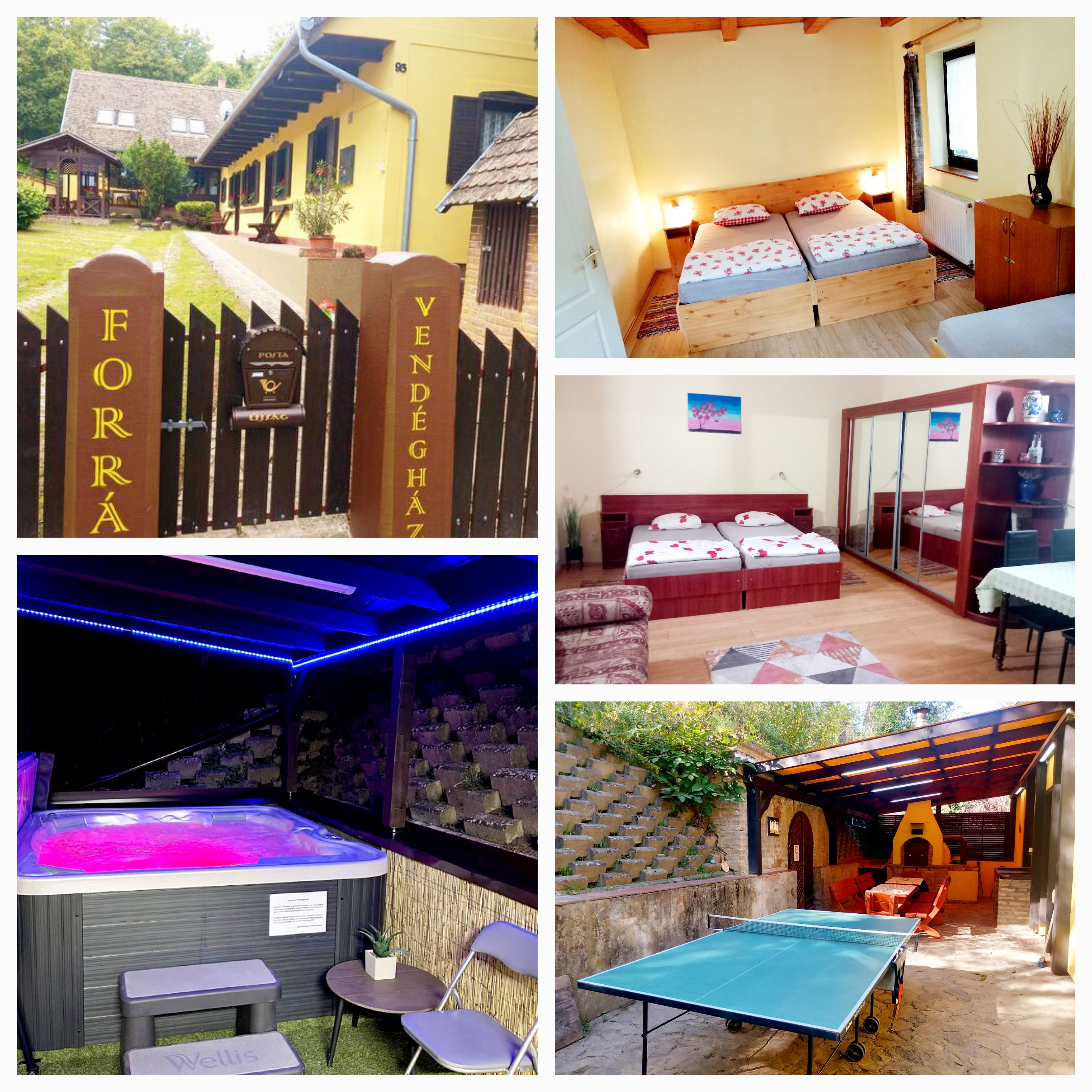 A Forrás Vendégház kényelmes és színvonalas szállást nyújt 24 fő részére, külön ágyakon.