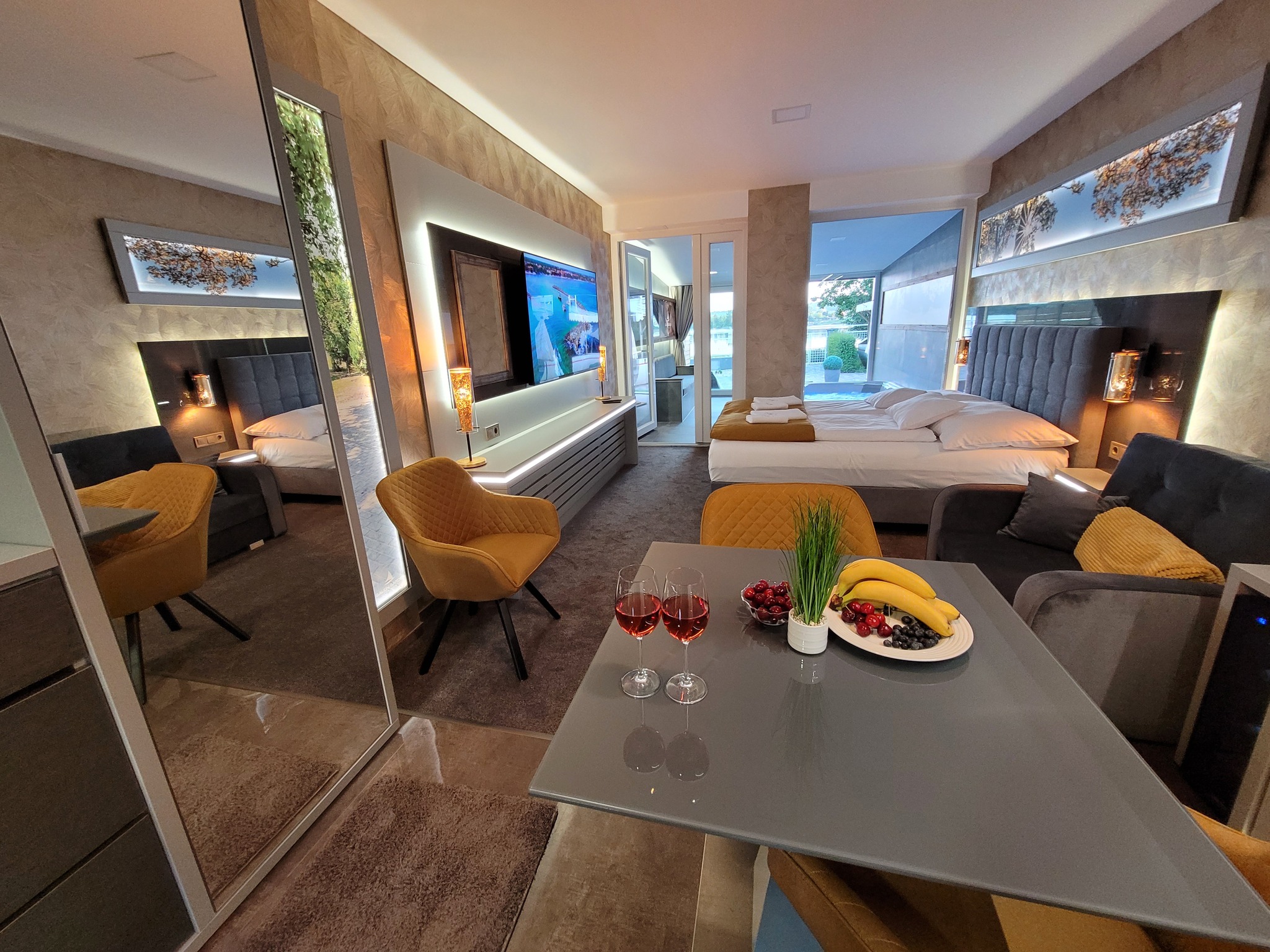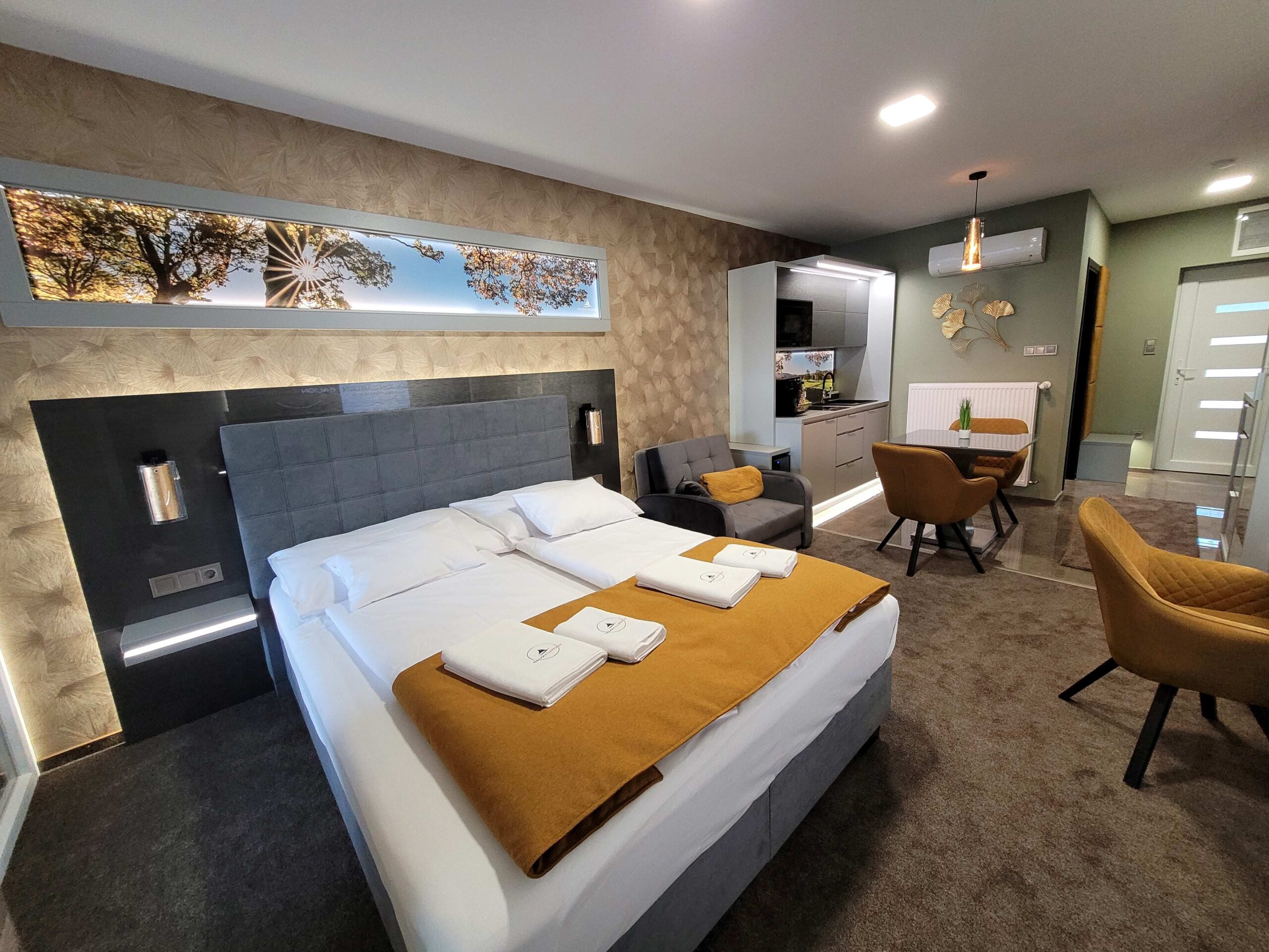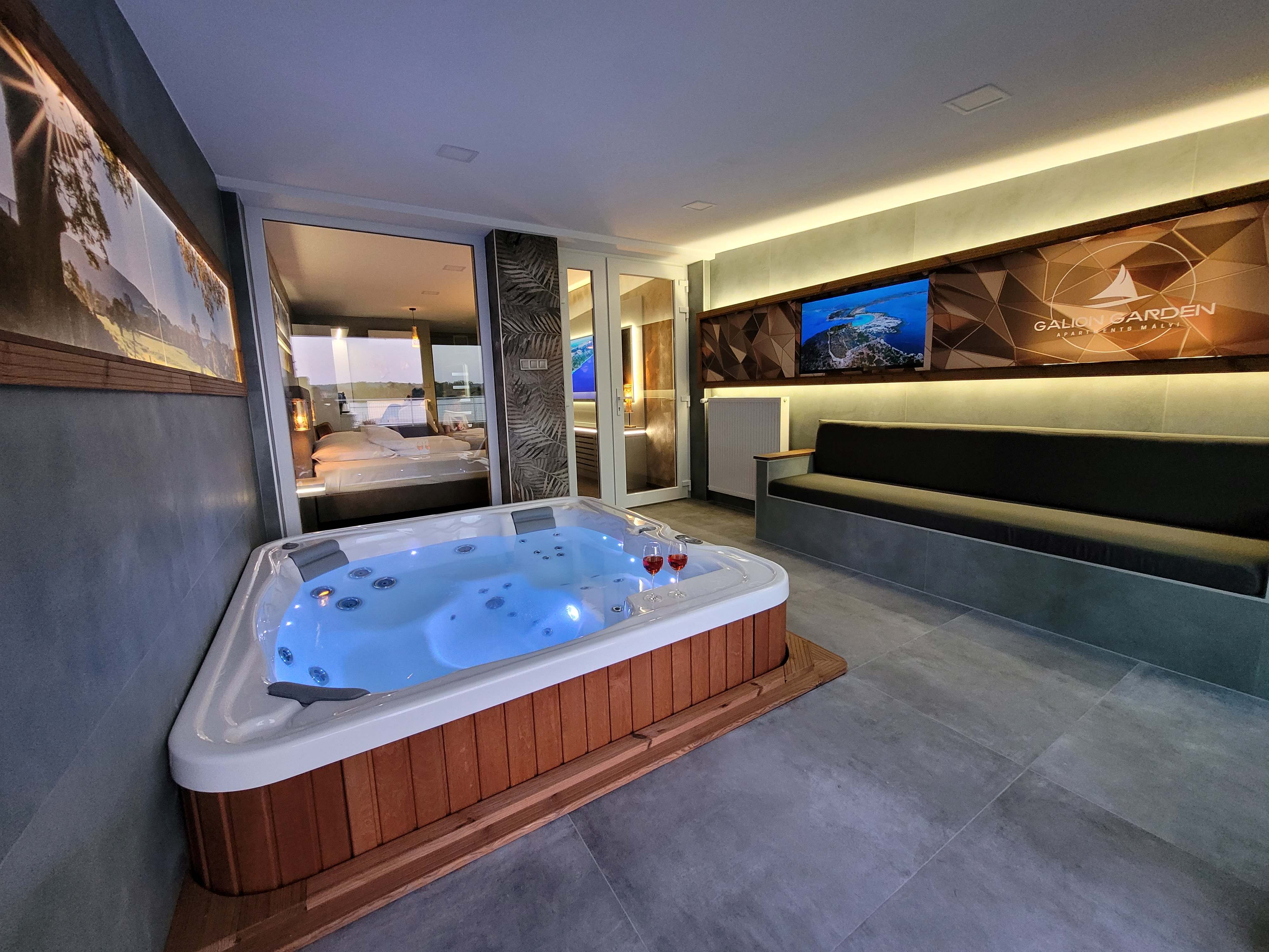 Szeretettel várunk Miskolc belvárosától 10 km-re a Mályi-tónál a Galion Garden apartmanunkban. A gyönyörű, tóparti környezetben fekvő exkluzív apartman saját jacuzzival, egész évben várja a pihenni vágyókat. A különleges kialakítású klimatizált szoba és a fűtött jacuzzi részleg kertkapcsolattal, tópanorámával, jól felszerelt konyhával, minibárral, széles borkínálattal áll rendelkezésre. Az apartmanhoz óriás tévé, zárt parkoló, pihenőkert tartozik. Eredetileg 2 főre javasoljuk, de plusz 1 főre pótágyat is biztosítunk.