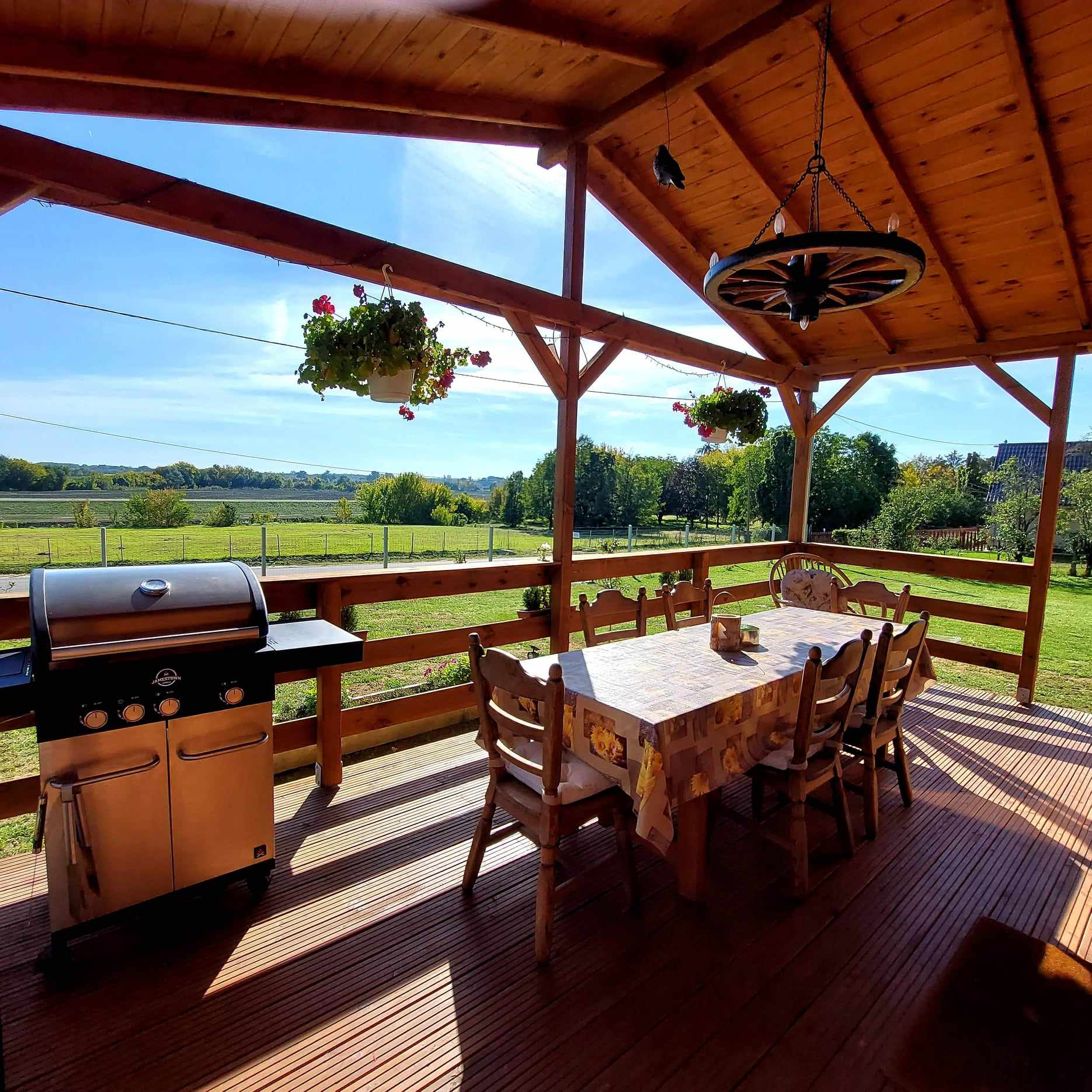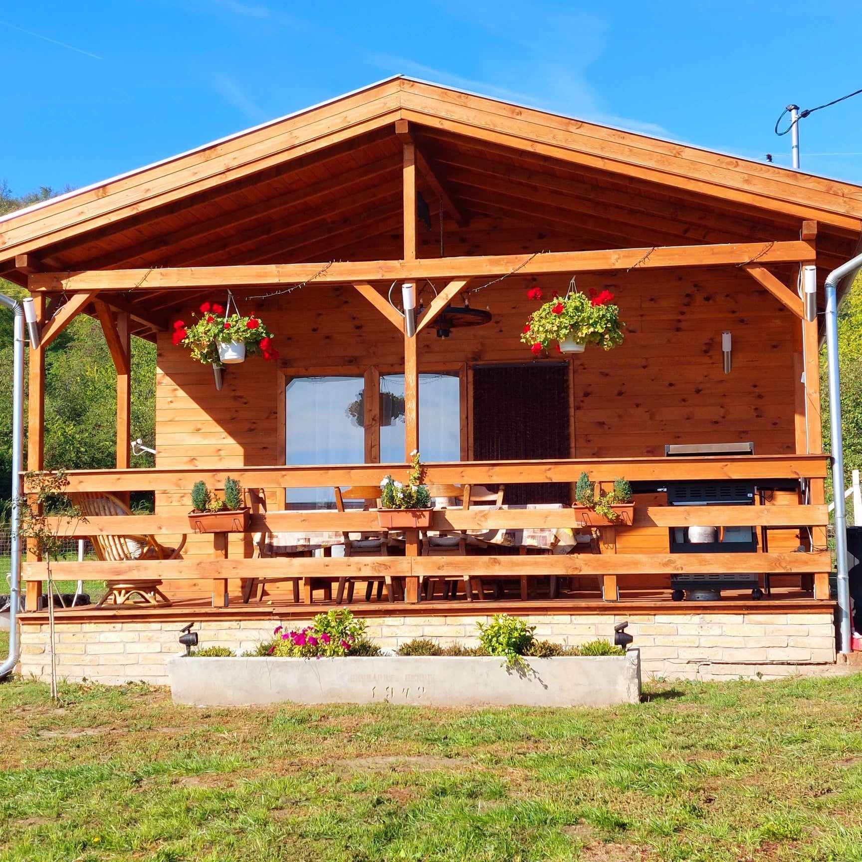 (2db háló franciaágyakkal, nagy nappali étkezővel, kandallóval, kihúzható teljesértékű kanapéval, konyha, fürdő zuhanyzóval, nagy terasz)