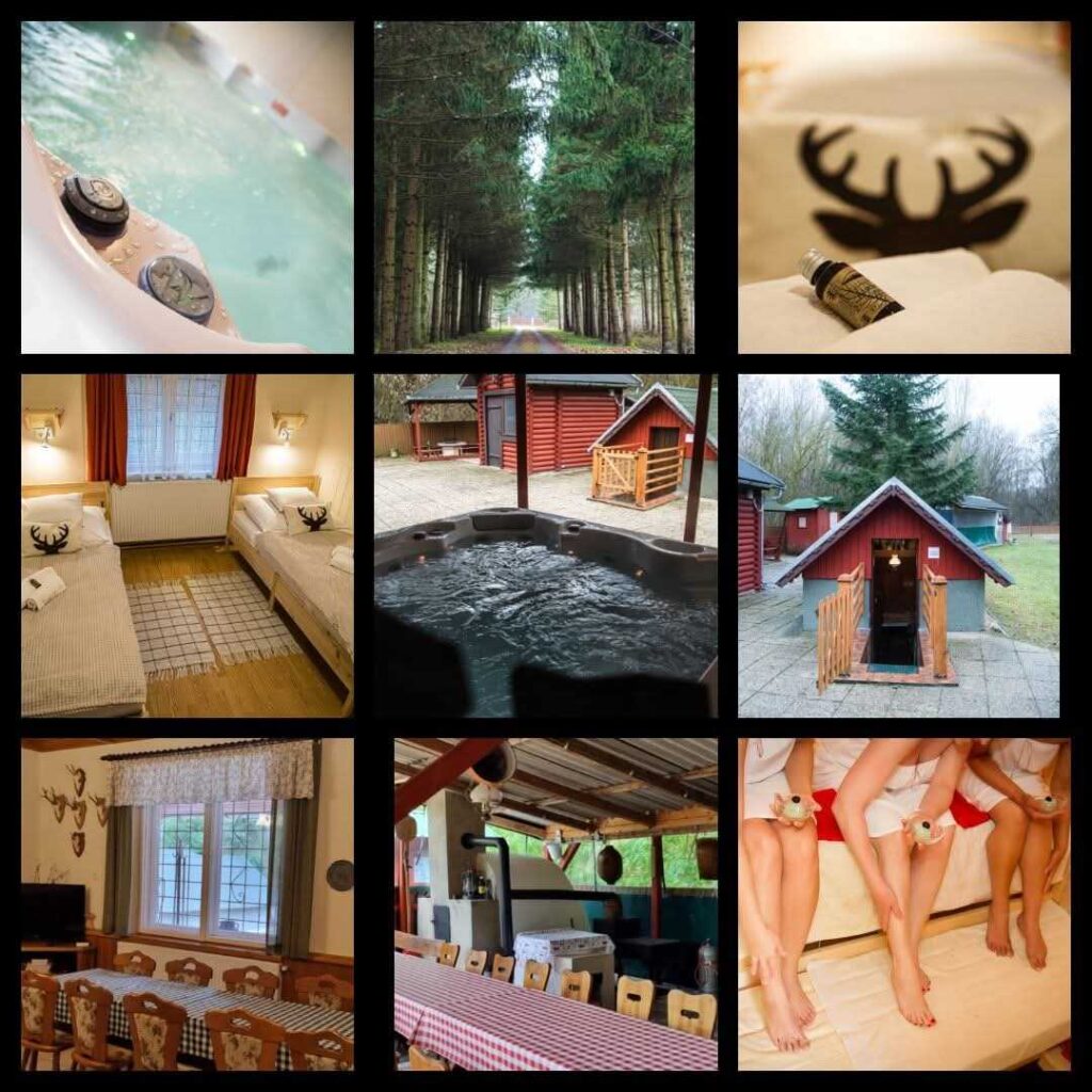 Tökéletes pihenés az erdő szívében. Ha valódi nyugalomra vártok távol a város zajától, vendégházunk az erdő közepén bújik meg ahol nincsenek szomszédok csak a természet csendje. Jacuzzi,szauna,tágas közösségi tér, kerti sütögetési lehetőség, gyerekjátékok:sakk,trambulin,játszótér,röplabda pálya, hinta.