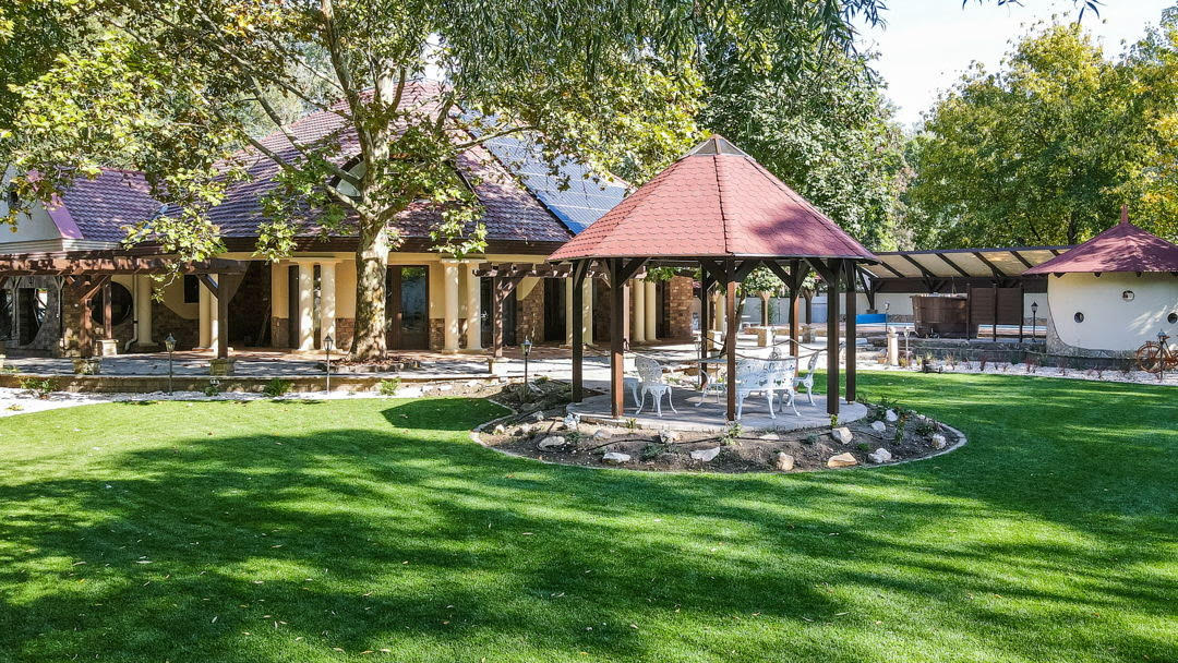 A tágas terek – a kulináris igényt kielégíteni képes konyha, a kandallós nappali és a hatalmas étkező – mellett a gondozott kert és wellness lehetőségek segítenek kiszakadni a hétköznapokból. Magyar biliárdasztal, elektromos darts, sakktábla és társasjátékok várják a játék szerelmeseit. A feltöltődéshez jakuzzi, finn szauna, a szezonálisan használható kültéri medence és merülő dézsa áll rendelkezésre. Az Ínyenceknek figyelmébe ajánljuk a kerti sütögetés és grillezés lehetőségét, ami a kisebb-nagyobb családokat és társaságokat összehozhat. A gyönyörű kertet körül öleli a szerelemösvény, ennek közepén található egy nyitott pagoda, amely lehetőséget ad kisebb kültéri esküvők megrendezésére.
