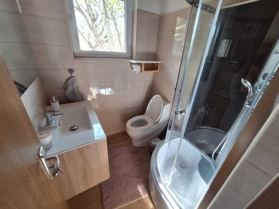 A vendégházban 2 szoba , 1 zuhanyzós fürdőszoba wc-vel és egy egylégterű konyha-étkező-nappali található kihúzható ülőgarnitúrával.