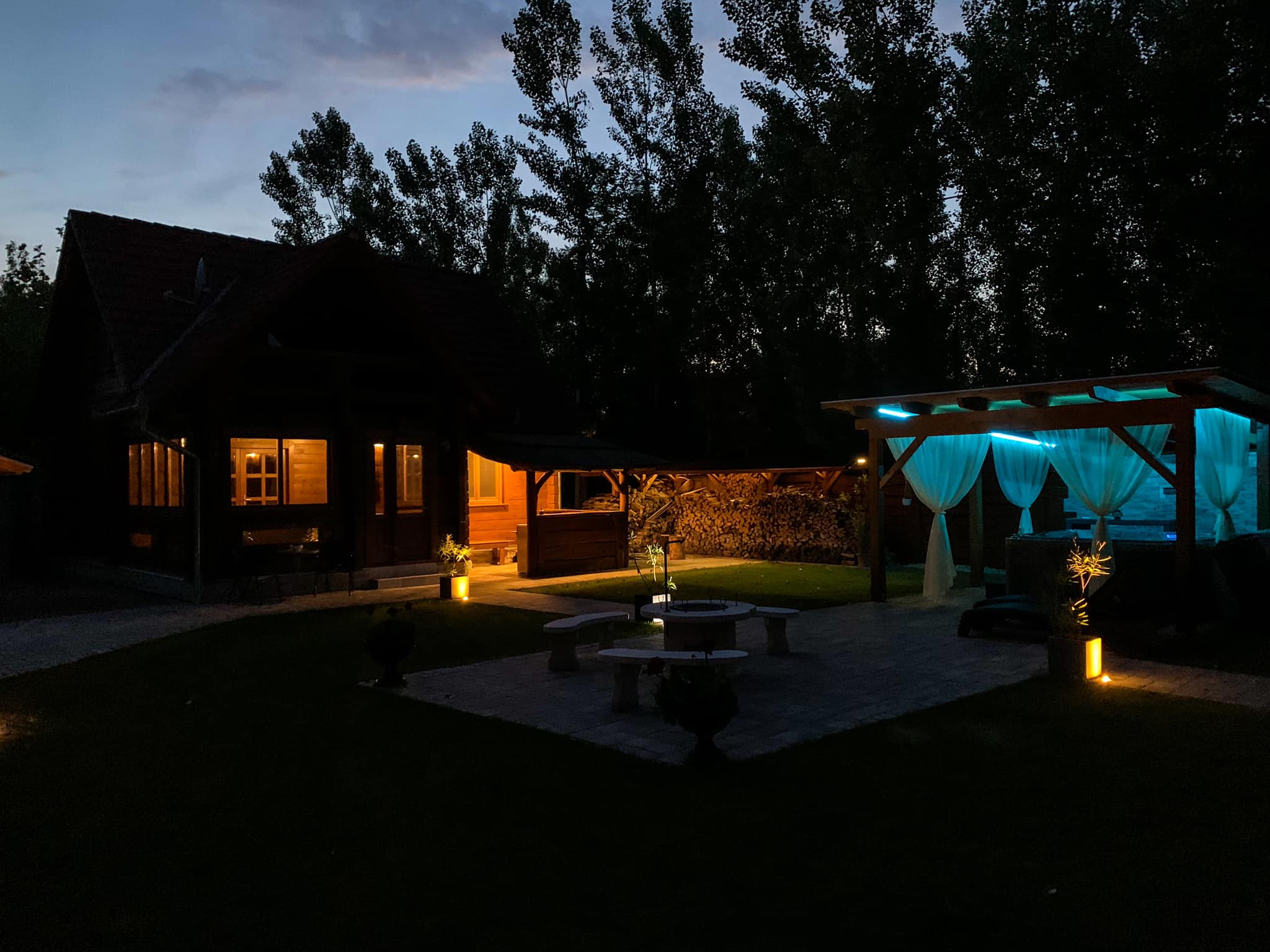 Felszereltség: jakuzzi, saját vízpart, tűzrakóhely, grillező, parkoló, kandalló vagy kályha, WiFi, klíma