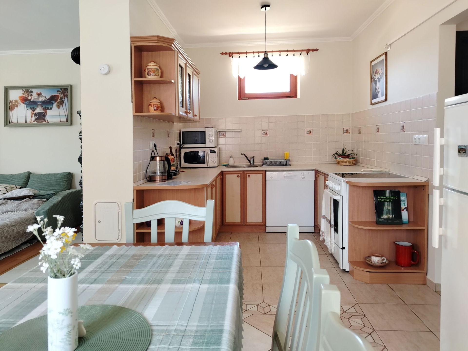 Akár 7-en is jöhettek: összesen 75 m2-en egy 3, illetve egy 2 személyes háló, valamint további egy, pótágyazható külön félszoba áll rendelkezésetekre, két külön fürdővel és egy tágas konyha-étkezővel. A félszoba alapból gyereksarokként van berendezve és felszerelve, illetve babágyat, fürdető kádat, etetőszéket, felállót, gyerek étkészletet, bilit, vasalót, teregetőt, mosó- és mosogatógépet is találtok nálunk, hogy minél könnyebb legyen a nyaralás.