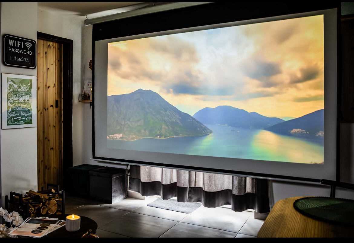 🎞️Motorikusan állítható vetítővászon, okos projektorral Netflix, Disney, Prime, Max előfizetés