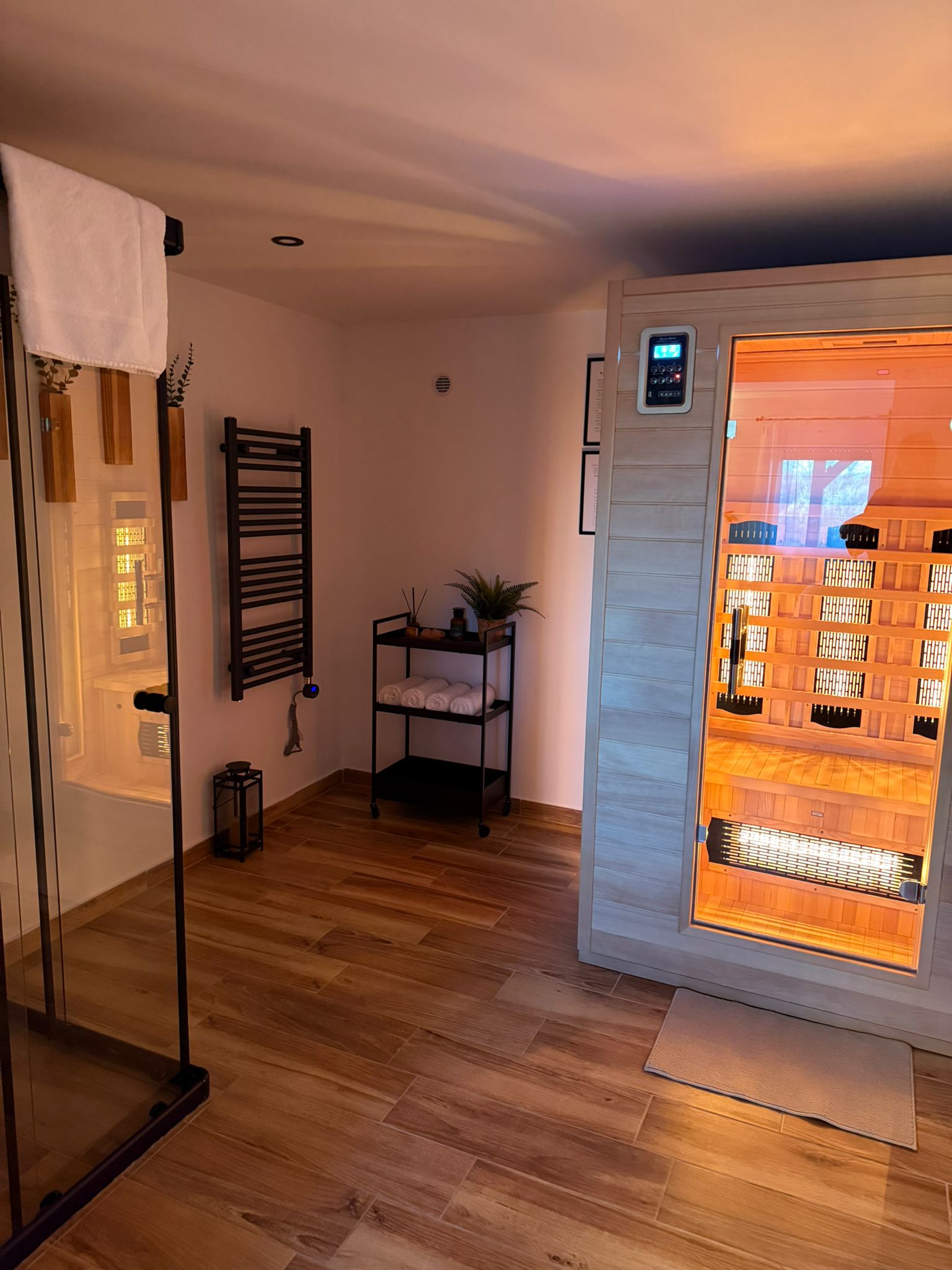 Zalaegerszegen, a Bozsoki-hegy tetején, a természet szívében vár rád a mi kis vendégházunk. A hegyen teljes a csend és a nyugalom – mégis, kevesebb mint 10 perc alatt elérhető a város. A felsőszinten lévő hálószobában prémium matracos franciaágy, plusz a konyhában egy kihúzható kanapé is található. A földszinten a kályhával fűthető nappaliban egy 2 fős kanapét is használhattok. A hálószobában projektor gondoskodik az esti moziélményről. A ház teljesen felszerelt konyhával, hűtő-fűtő klímákkal, 5 fős jakuzzival, 65 C°-ig felfűthető full spektrum infraszaunával és nagy panorámaterasszal rendelkezik, ahonnan a végtelen erdőre, szőlősorokra és a Csácsi arborétumra nyílik kilátás. Nincsenek szomszédok, csak Ti & a természet: a házhoz saját kis erdőrész tartozik és csak pár lépést kell tenned a Zala-teteje tábláig, ahonnan a hangulatos Páfrányok útja túraútvonal indul. Ha szeretnél kicsit lelassulni, itt minden adott hozzá!