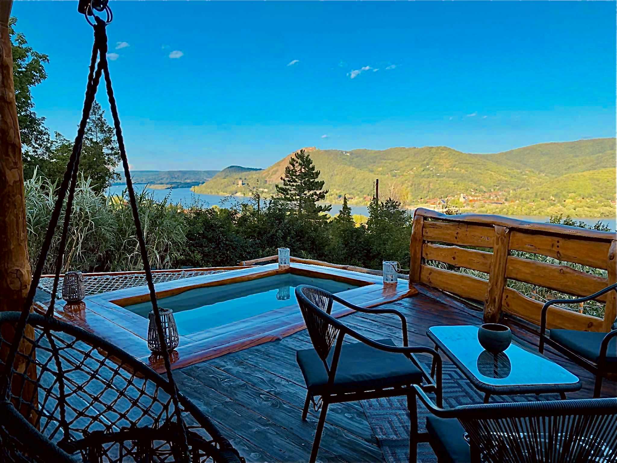 Felszereltség: jakuzzi, szauna, medence, grillező, parkoló, kandalló vagy kályha, WiFi, klíma