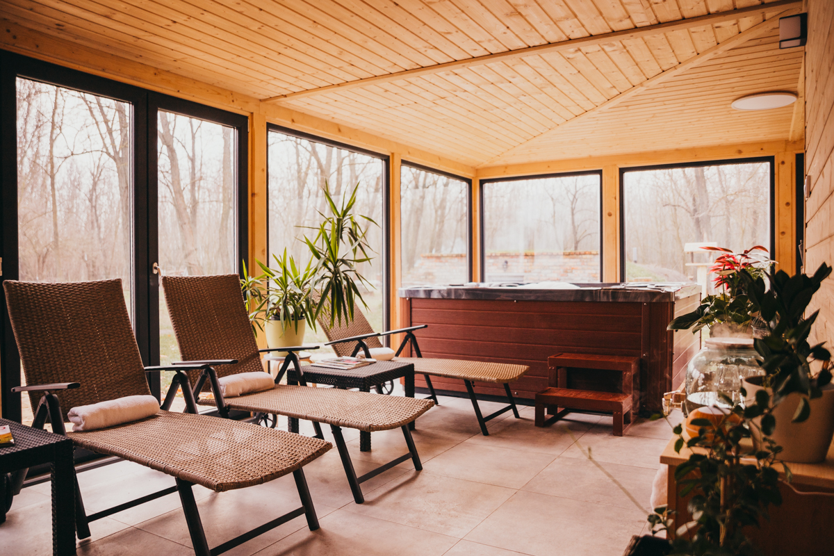 Felszereltség: jakuzzi, szauna, medence, tűzrakóhely, grillező, parkoló, kandalló vagy kályha, WiFi, klíma, játékok