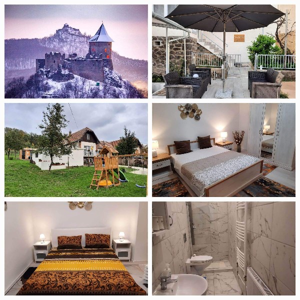 Vendégházunk Nógrádban, Somoskőújfalun található, hegyek ölelésében, várak szomszédságában. Négycsillagos minősítésű vendégház, nagy kerttel, kültéri finn szaunaházzal, medencével, tavasztól őszig kültéri, télen beltéri pezsgőfürdővel. Nagy konyha, erkély, terasz, Wifi, parkoló.Grillezési, bográcsozási lehetőség, kerékpár kölcsönzés.Több túraútvonal kiindulási helye. Csend, béke nyugalom. A nagyobb 52 m2-es, négyszemélyes apartman, a kisebb 35 m2-es , háromszemélyes apartman, saját fürdőszobával, TV, wifi, közös főzőkonyha, borospince jakuzzival, gyermekjátszótér. A nagy apartman 35000 Ft/éj, a kisebb apartman 25000 Ft/éj. welness szolgáltatás külön díjért igényelhető.
