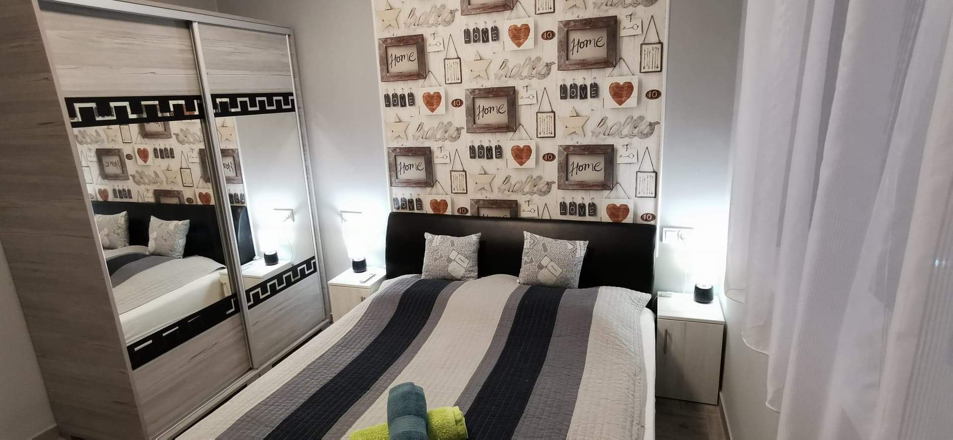 Hálószobákban 1-1 francia ágy található, a nappaliban kihúzható kanapé ad lehetőséget további 2 személy kényelmes elhelyezésére. Az apartmanok 2-3-4-5-6 személy elhelyezésére alkalmas. Konyha jól felszerelt, vízforraló, kávéfőző, kombinált mikró sütő, kerámia főzőlap, mosogatógép, kenyérpirító található. Zárt udvaron grillsütőt használhatják a vendégek. Az apartman vendégeinek a zárt parkolóban 1 gépkocsi beállására van lehetősége, a parkolás díja: 1. 500ft/nap. Garantáljuk, hogy apartmanunk tisztaságával és felszereltségével elégedettek lesznek a vendégeink. Házi kedvenceket az apartman nem fogad.
