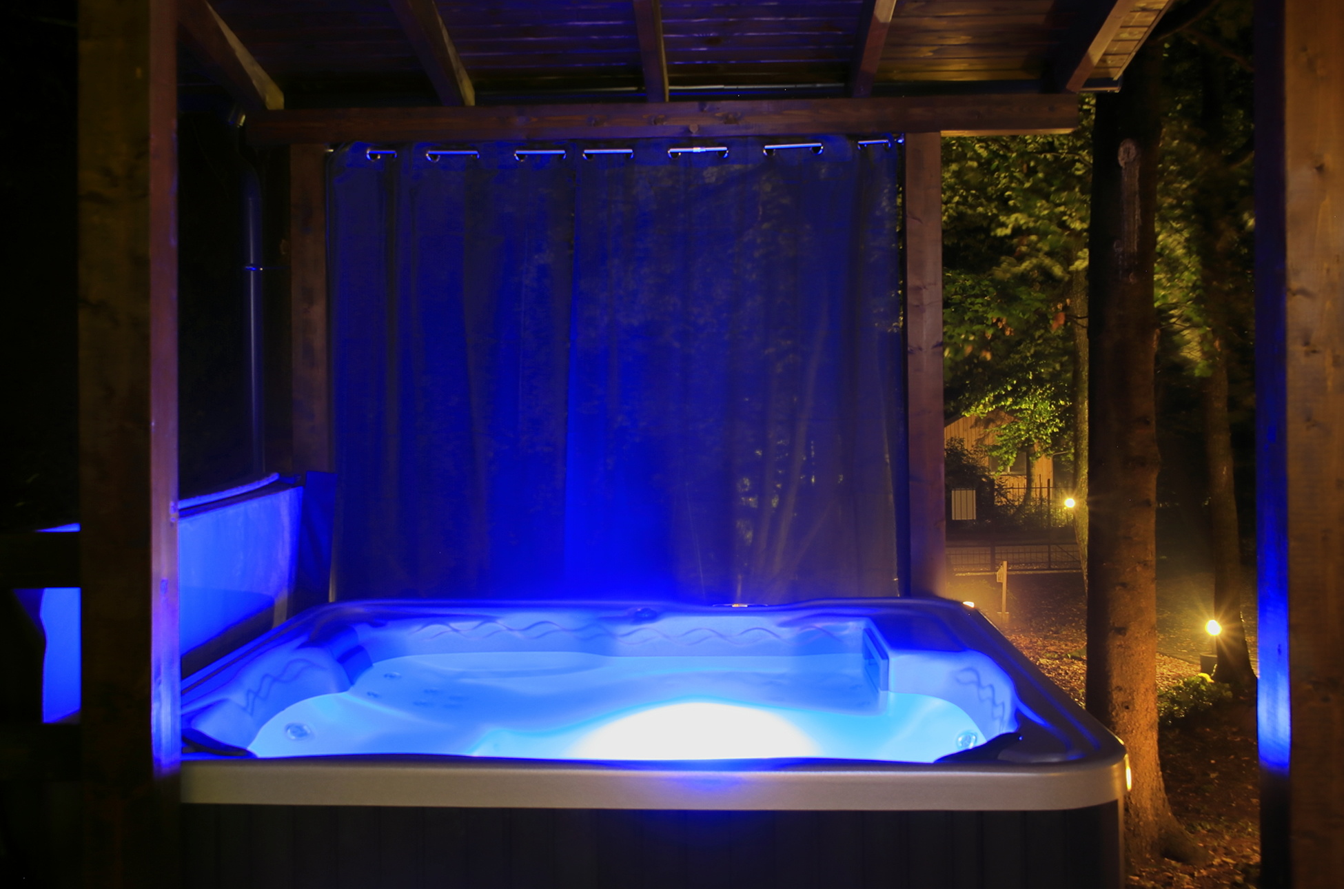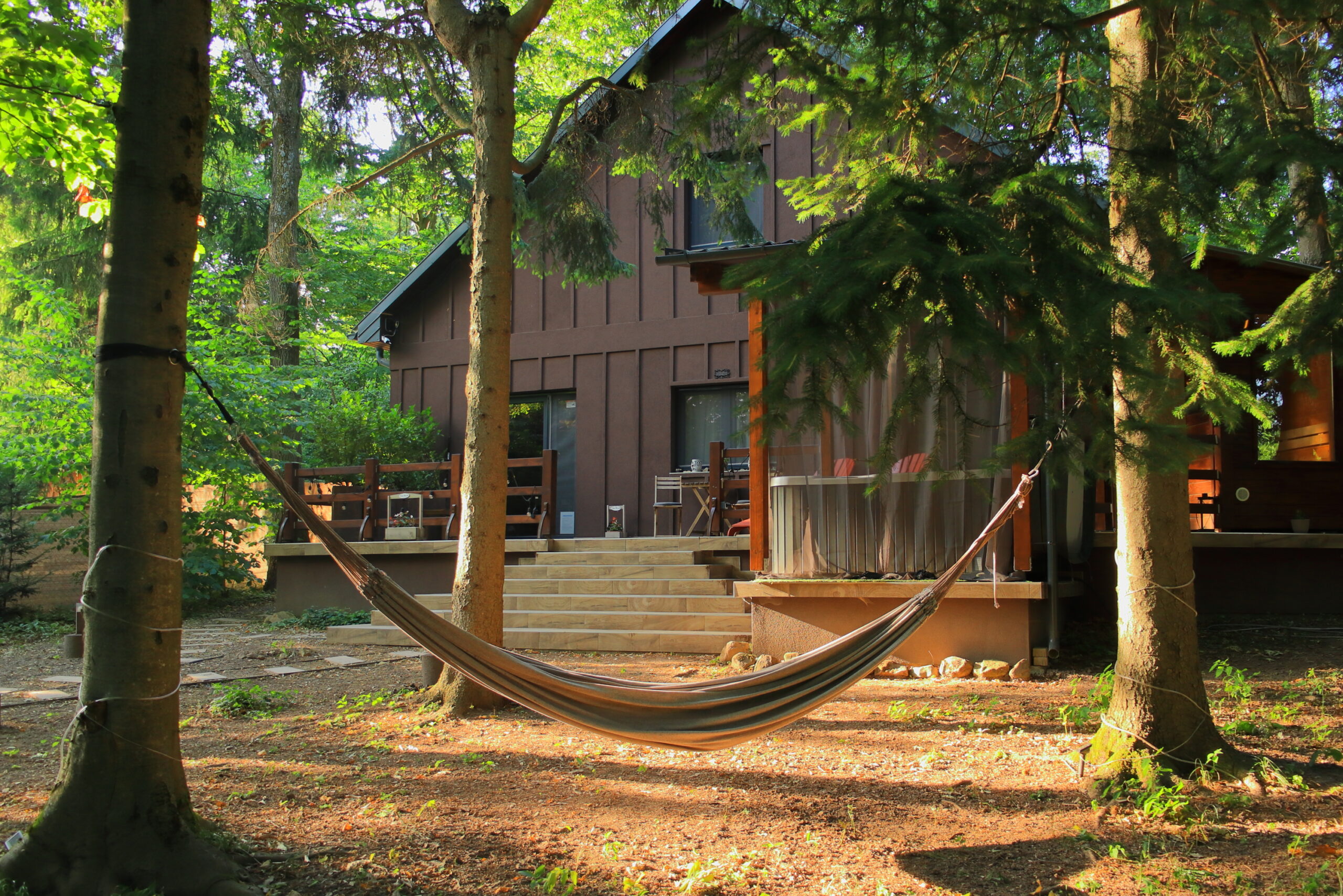 A vendégházunk igazi ékköve a privát wellness részleg, ahol kültéri fedett jakuzzi és szauna várja Önöket.