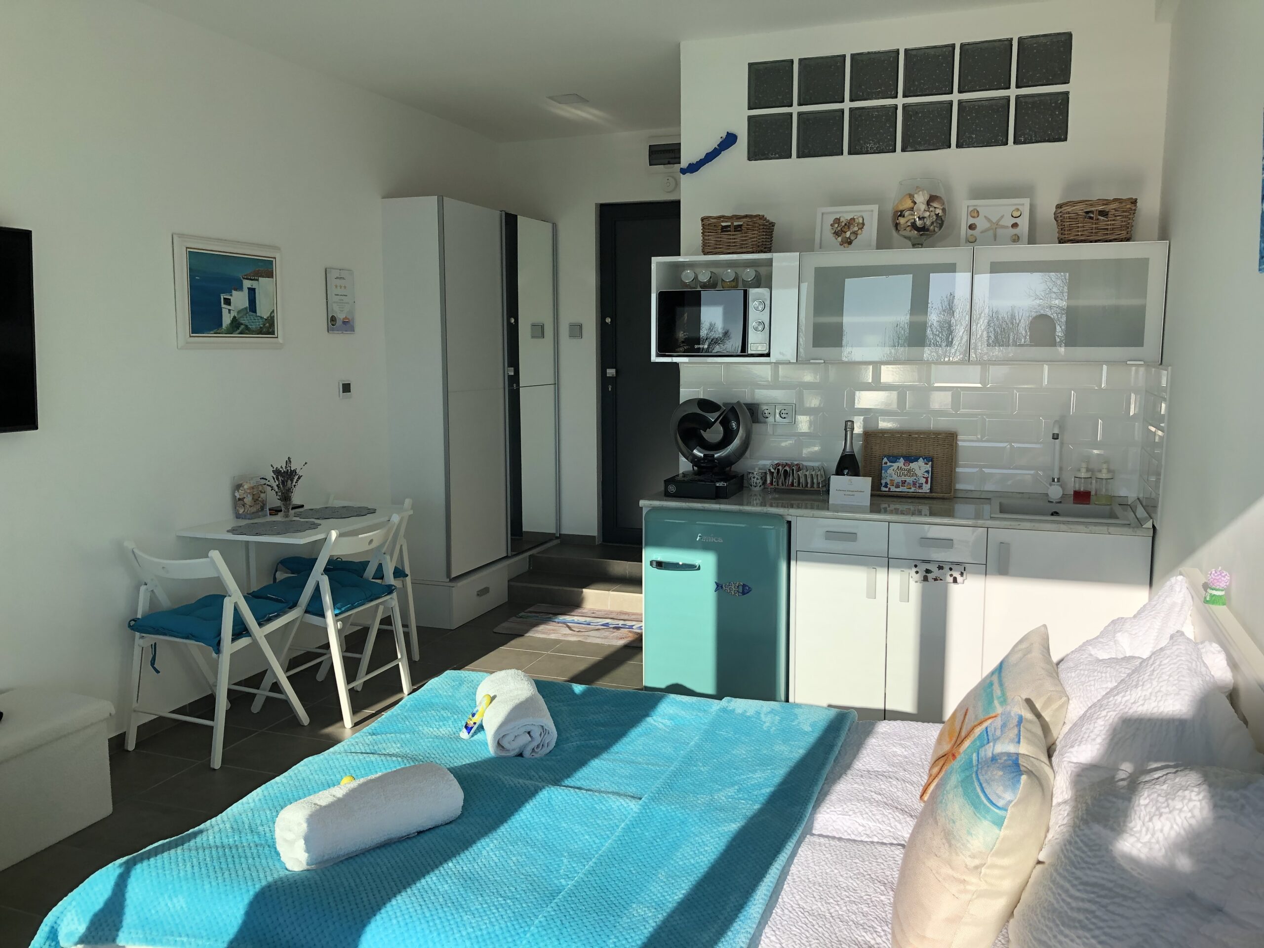 Szeretettel várunk minden kedves pihenni,nyaralni vágyót Alsóörsre balatoni panorámás apartmanunkba.Teljesen felszerelt konyha,zuhanyzós fürdőszoba,saját napozó terasz,infra-finn szauna,szezonális medence szolgálja vendégeink kényelmét.Apartmanunk egész évben foglalható 3 főre,ingyenes zárt parkoló,hűtő-fűtő klíma,3 perc séta a balatoni strandtól.