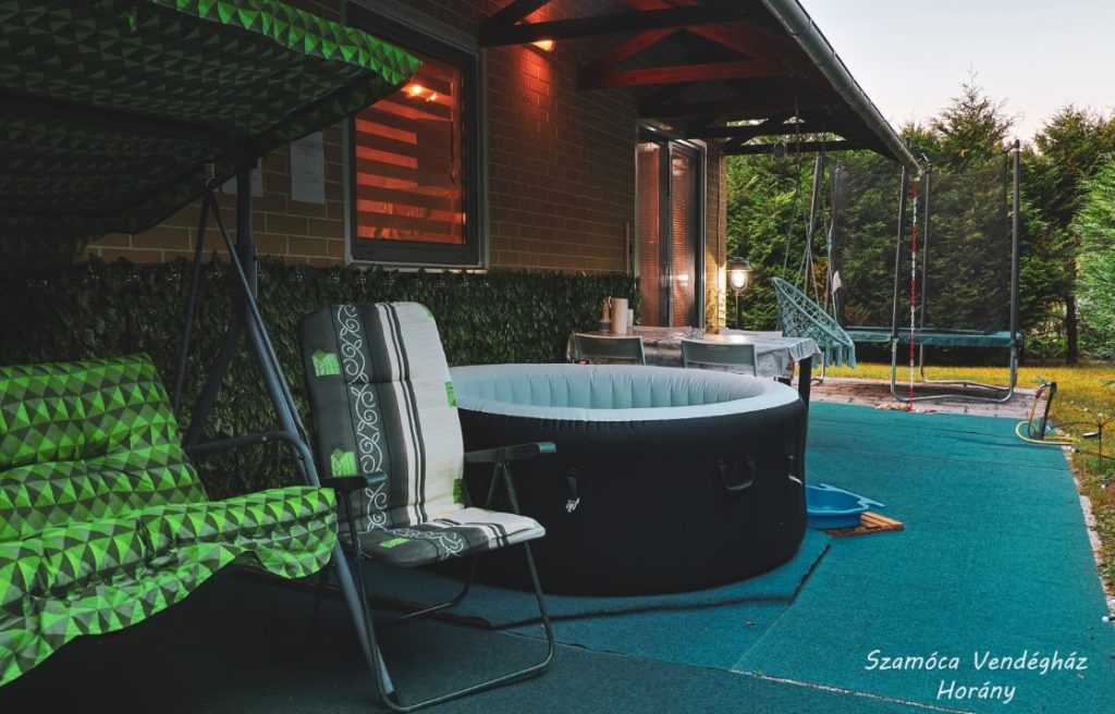 Felszereltség: jakuzzi, szauna, tűzrakóhely, grillező, parkoló, kerékpár, WiFi, klíma, játékok