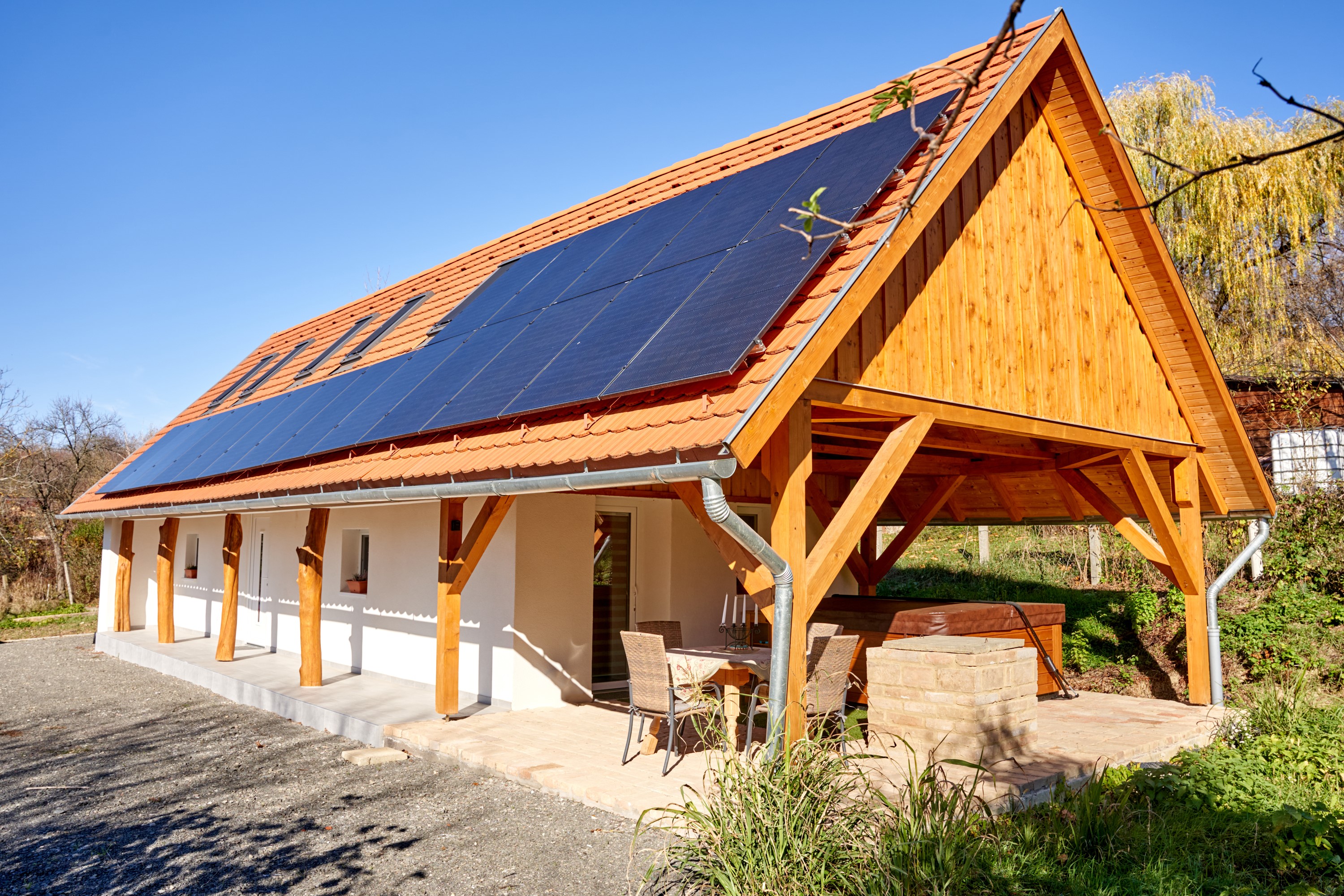 A Relaxáció csúcsa: A leginkább vágyott elem egy kényelmes, fedett teraszon elhelyezett 5 személyes prémium jakuzzi garantálja az ellazulást. Képzeljenek el egy pohár finom bort a csillagos ég alatt, miközben a meleg vízben pihennek – igazi feltöltődés testnek és léleknek egyaránt!