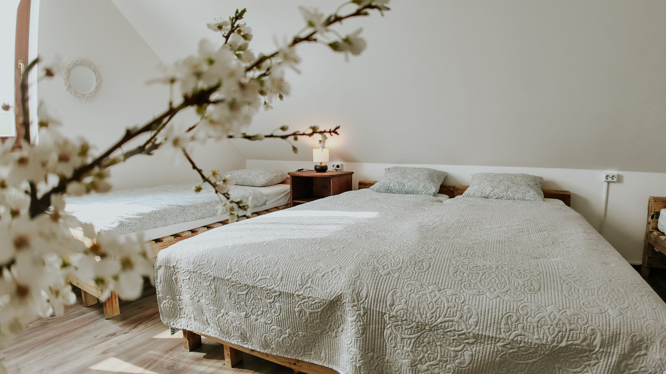 A 8 szobás ház 21 vendég befogadására alkalmas kényelmesen, további 5 pótágy kérhető. Ideális helyszínt biztosít rendezvények számára is. A vendégházban 8 szoba van 5 fürdővel. 1 db 4 ágyas/ 3 db 3 ágyas / 4 db 2 ágyas szoba elrendezéssel.