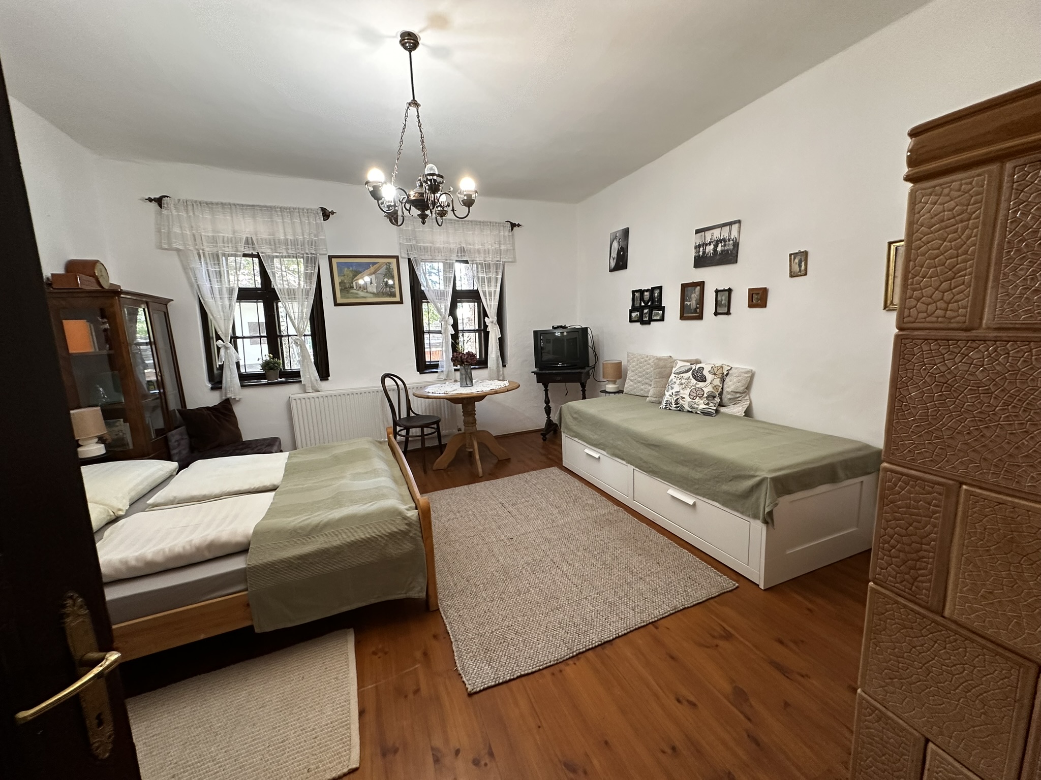 Szállásunk 2 különálló épületben található egy hatalmas parkos udvar közepén. Mindkét házban 2 -2 szoba található saját fürdőszobával, konyhával étkezővel. A szálláshoz tartozik egy terem, amely 24 fő befogadására alkalmas cserépkályhával, elektromos darts-sal . A teremből nyílik egy kiválóan felszerelt konyha (mosogatógép, elektromos sütő-főző lap, darálós kávéfőző).