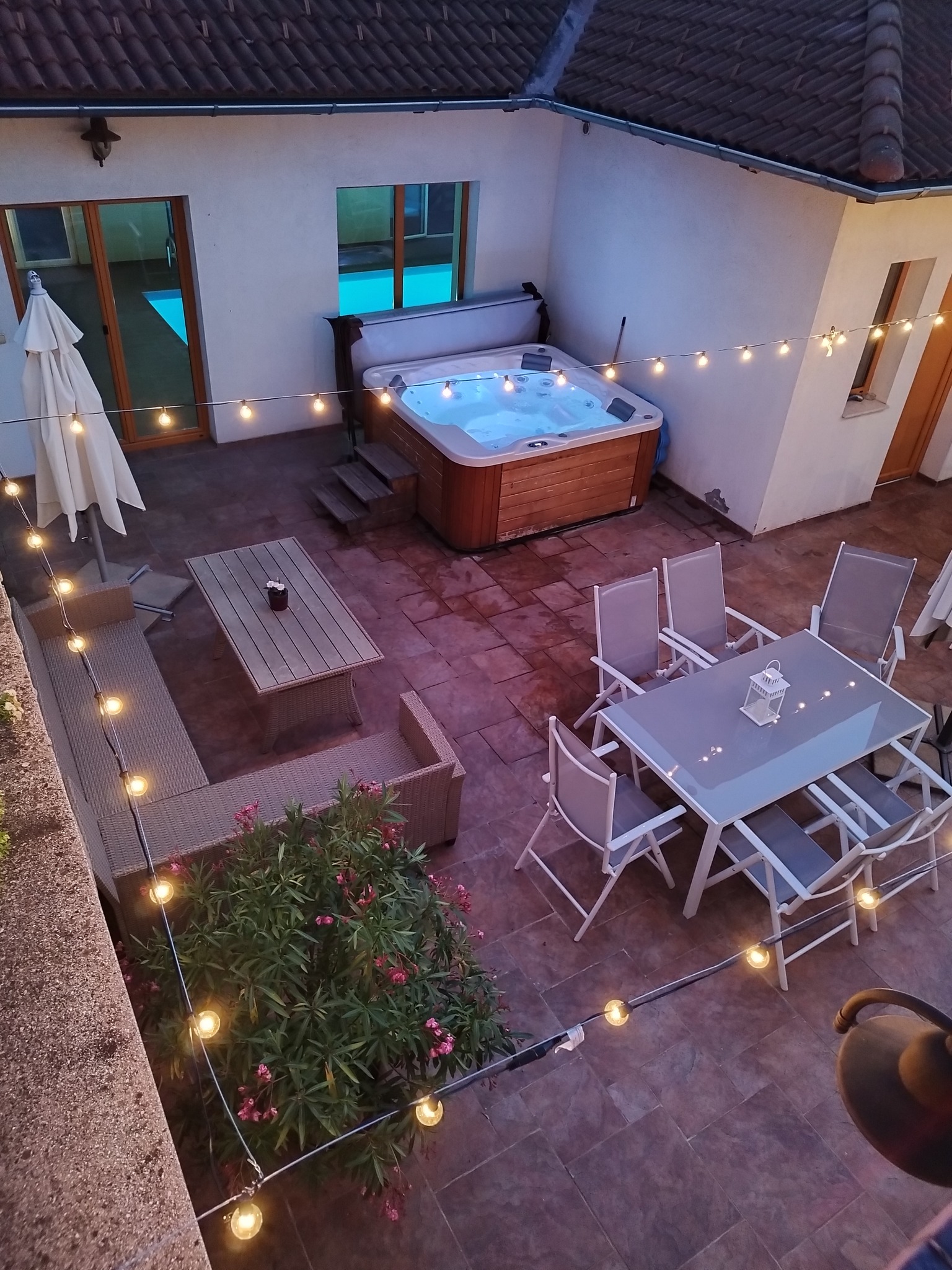 Egyben foglalható vendégházunk 5 – pótágyazható- hálószobájában akár tizenketten is remekül érezhetitek magatokat. Az abszolút halkan zümmögő klíma, és blackout sötétítőfüggönyök tökéletes nyugit biztosítanak a pihenéshez. Ha pedig relaxálni, szeretnétek, vagy spa élményre vágytok, akkor a wellness- szint, 35 nm-es belső medencével, szaunával, jacuzzival – szerintünk szuper kereteket ad ehhez. Mi mindig feltöltődünk itt.