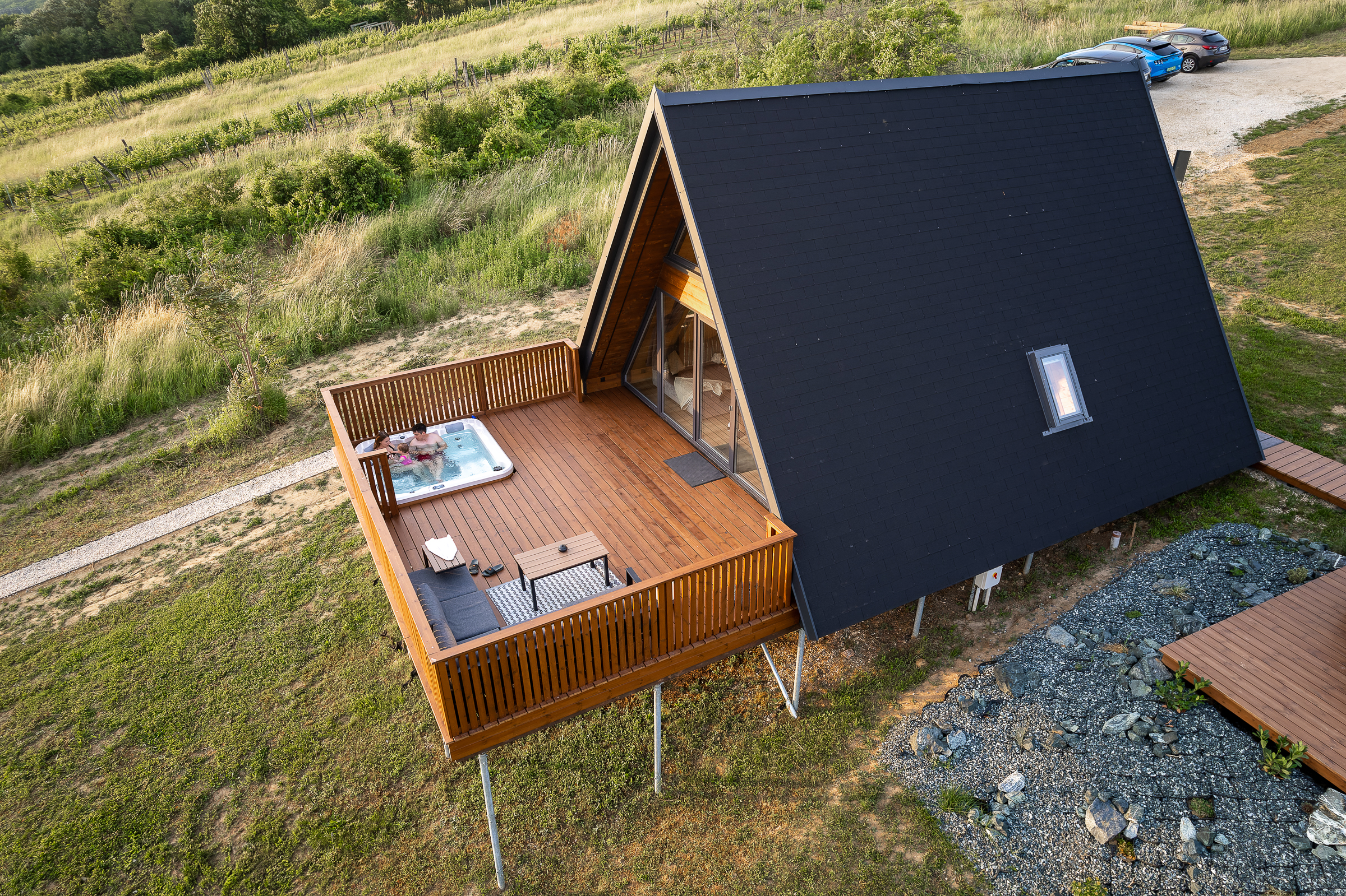 Felszereltség: jakuzzi, dézsafürdő, szauna, grillező, parkoló, WiFi, klíma
