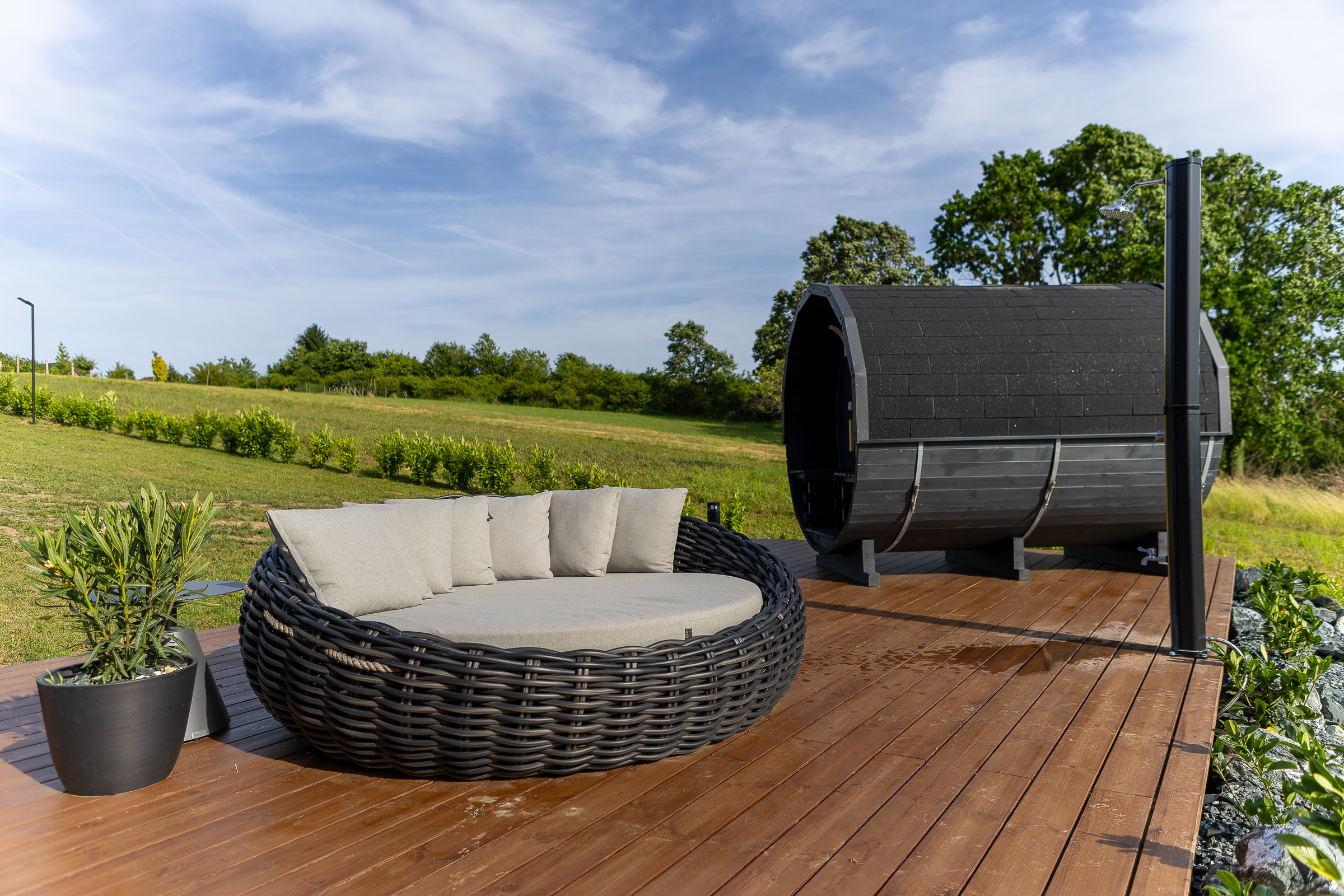 – Privát wellness (jakuzzi vagy dézsa + szauna)