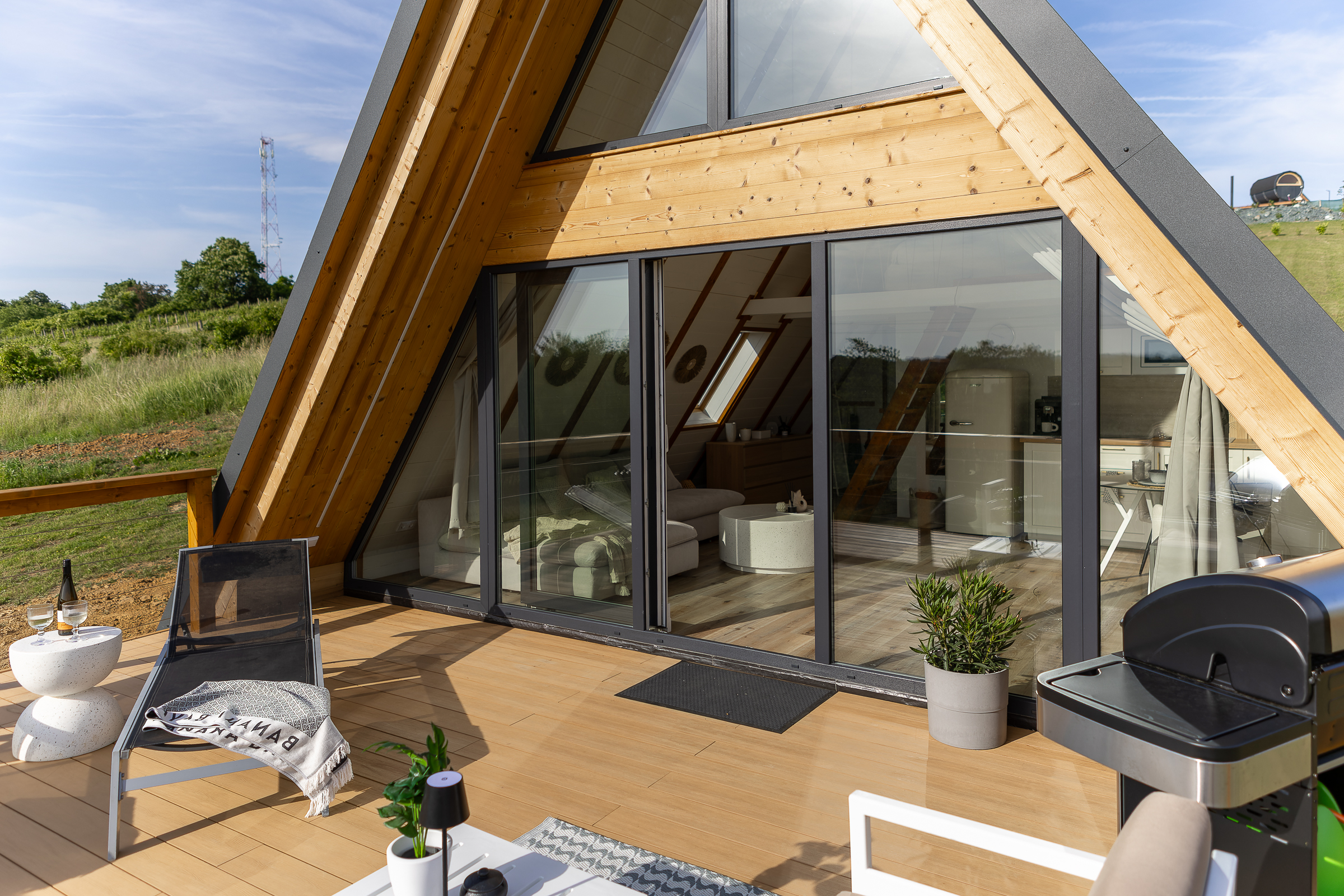 • Zeusz – Tengerparti hangulat a hegyen: két személyes Hikki fa tüzelésű fürdőkád, lounge pihenés, kültéri zuhany és természetközeli élmény 🌿